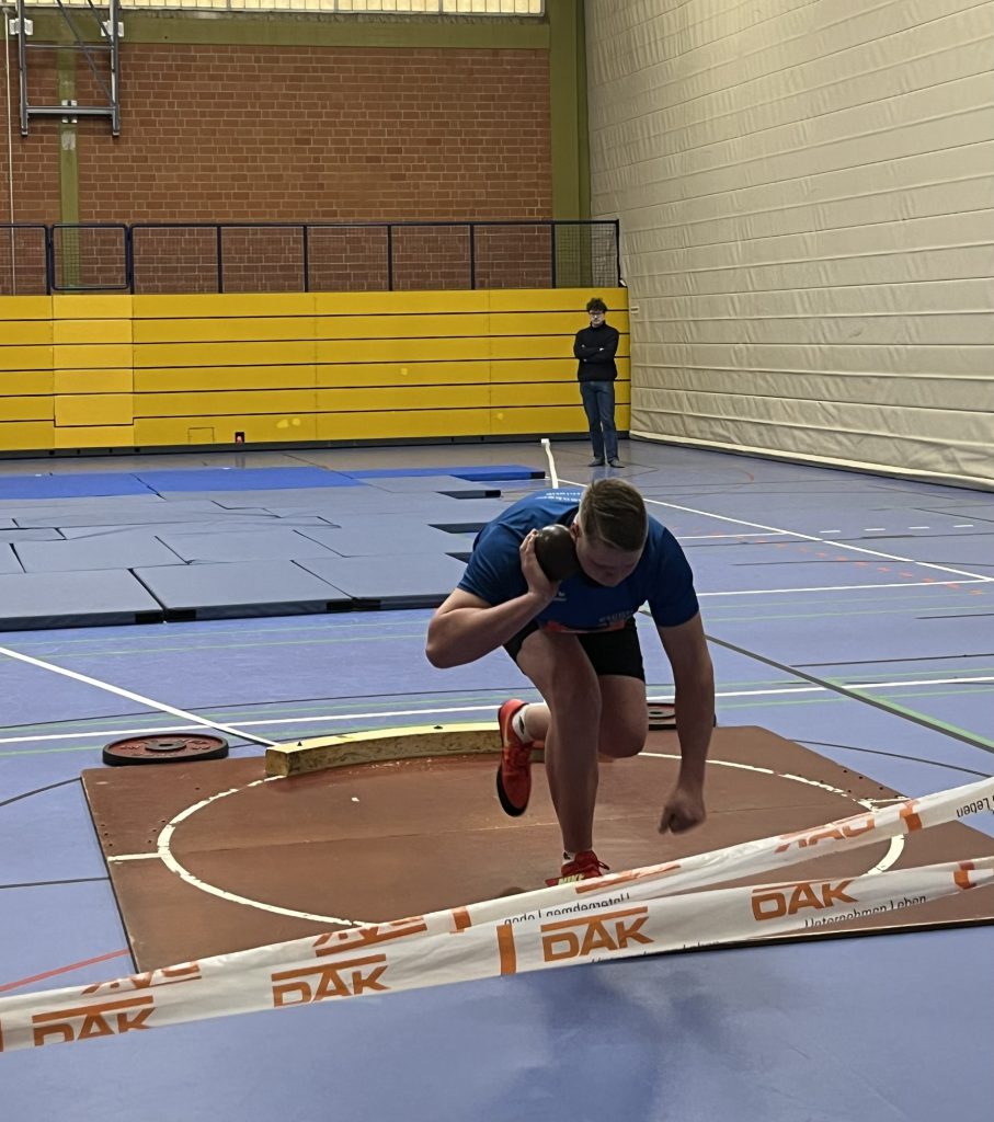 Als dritter U16-Athlet ging Eli Joel Abel in den Kugelstoßen Ring. Die Drehstoß-Technik wird langsam immer besser.