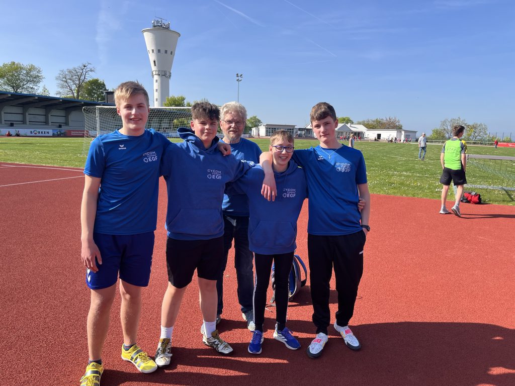 Im Speerwurf reihten sich unsere Herren eher hinten an. Hier gelangen Falk und Johann jeweils Würfe um die 22m. Nils Below und Eli kamen auf 19,15m bzw. 19,55m.