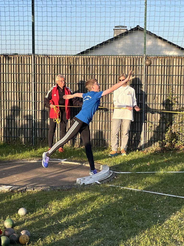 Eli und Linus Stuhlmann wagten heute mal den Ausflug zum Hammerwurf. Eli kam auf 17m, Linus schleuderte den Hammer auf 28m.
