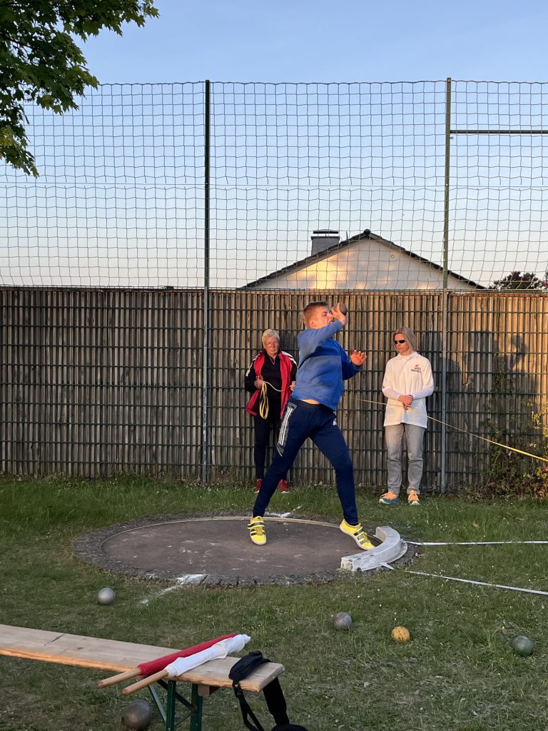 Mit der Kugel steigerte sich Johann auf tolle 10,41m und holte hier Silber. Eli stieß heute mit 9,35m ebenfalls Bestweite.
